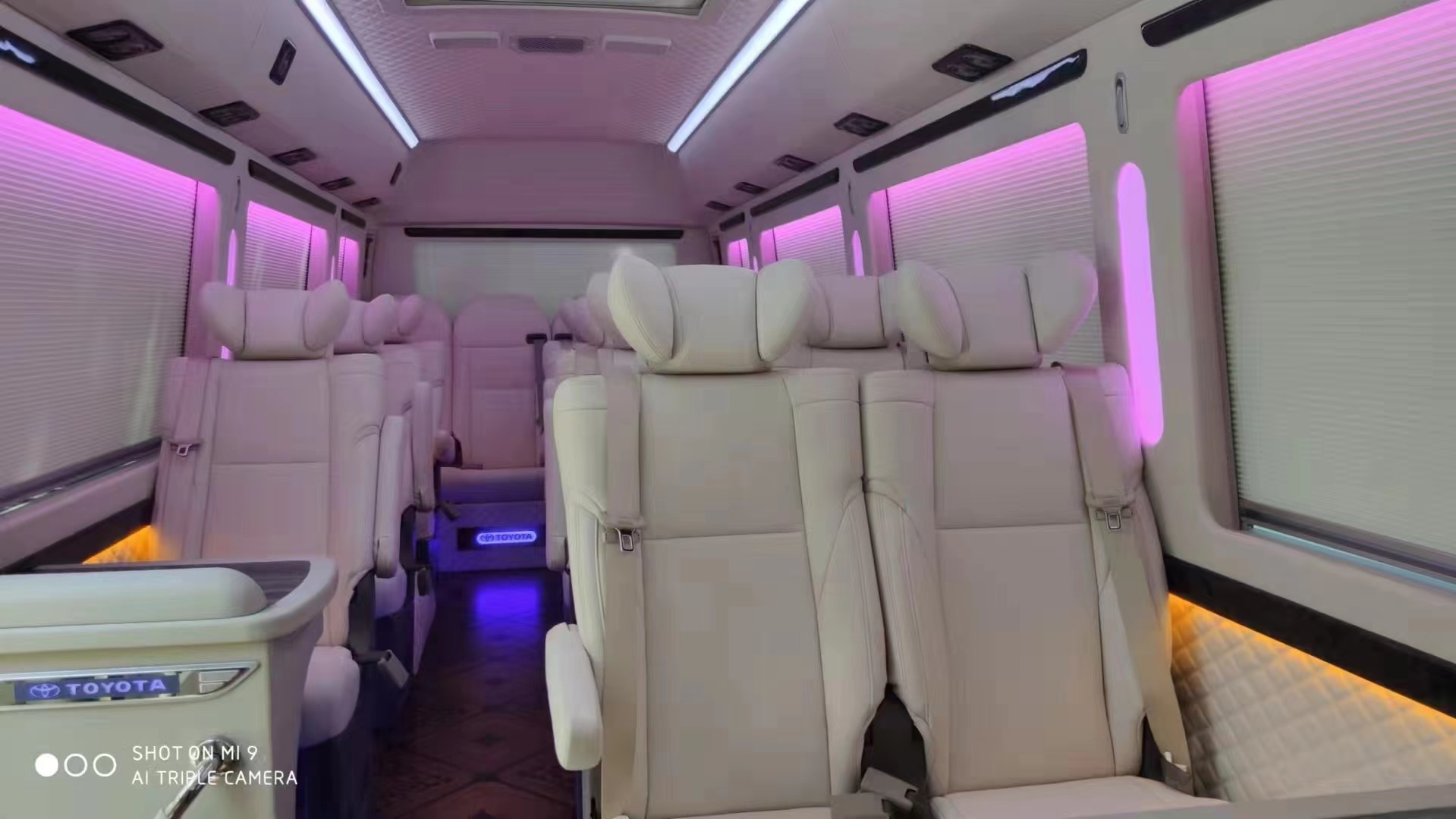 當然還有的汽車租賃公司買回來進行更高級的改裝,如座位全部換成:航空座椅。座位也由原來的19座變成14座,這樣讓車內空間顯的更寬敞,客戶坐著更舒適,而這種車型租賃市場行情價格在:2000-3000元不等。